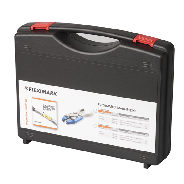 Montörpaket innehållandes skyltprofiler på rulle, profiltång och buntband för montering av kabel- och komponentmärkning direkt på plats. I skyltprofilerna kan flera av FLEXIMARK® Märksystem monteras. Med hjälp av profiltången kan du klippa till exakt rätt längd.